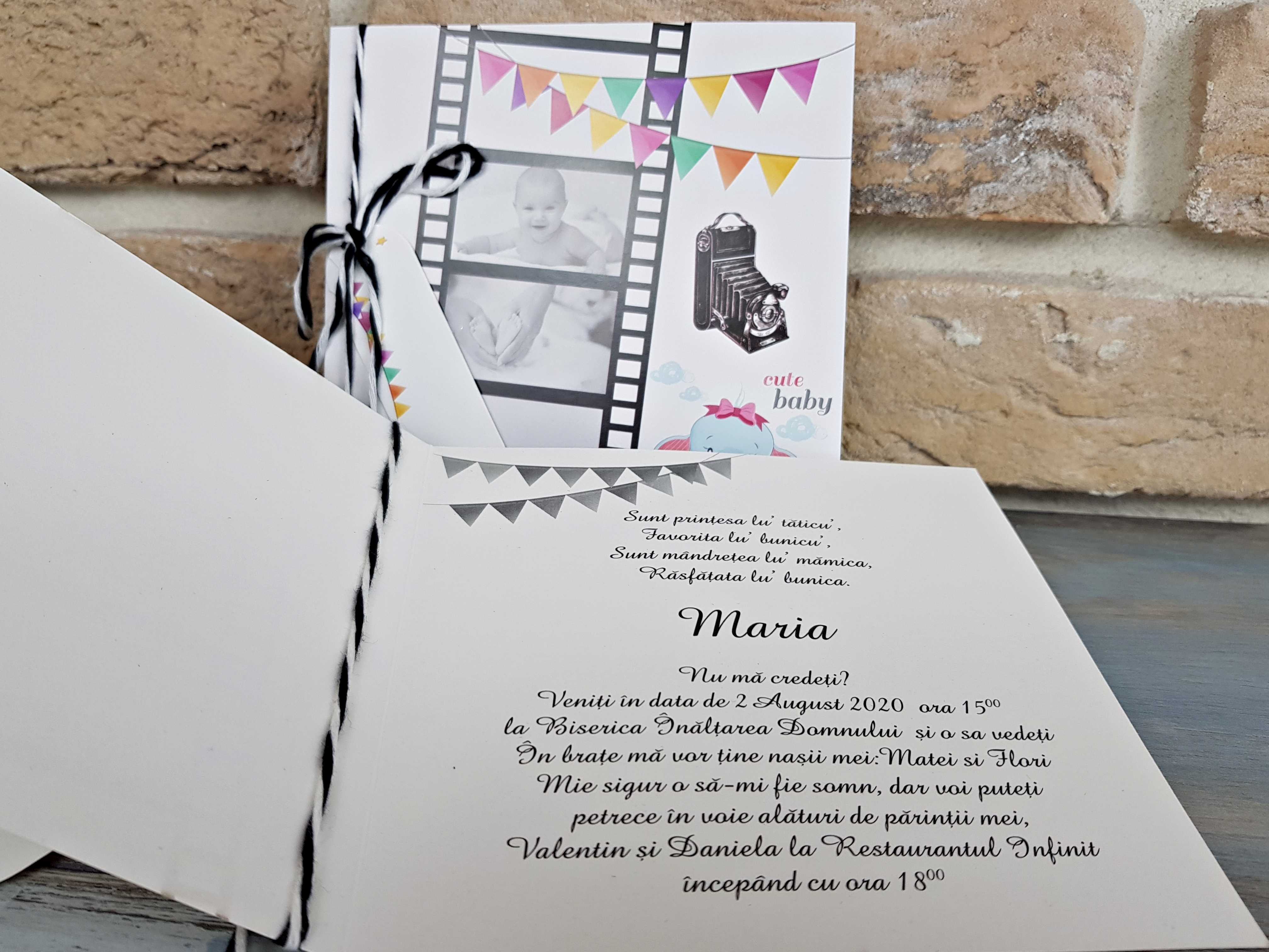 Descriere: cod - 8051 Invitatie de botez accesorizata cu snur si eticheta Pretul contine, TVA iar inscriptionarea este de 0,58 lei/buc Montajul este optional = 0,30 lei/buc